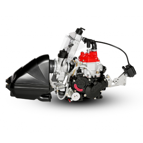 The Vortex ROK GP Senior and Junior kart engine is a single-cylinder 2-stroke engine with a displacement 125cc, reed valve intake in the crankcase, liquid-cooled through external pump equipped with centrifugal dry-clutch and an integrated electrical starter. It is also equipped with a balancer shaft that reduces vibrations, and a power valve that improves performance and drivability at low rpm.
